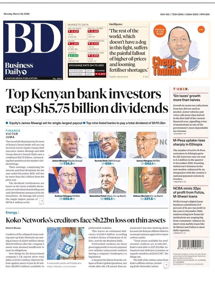 Top investors in major banks are set to pocket about Sh5.75 billion in dividends, driven by profits and rising payouts across lenders. Here are the top Kenyan bank investors earning…